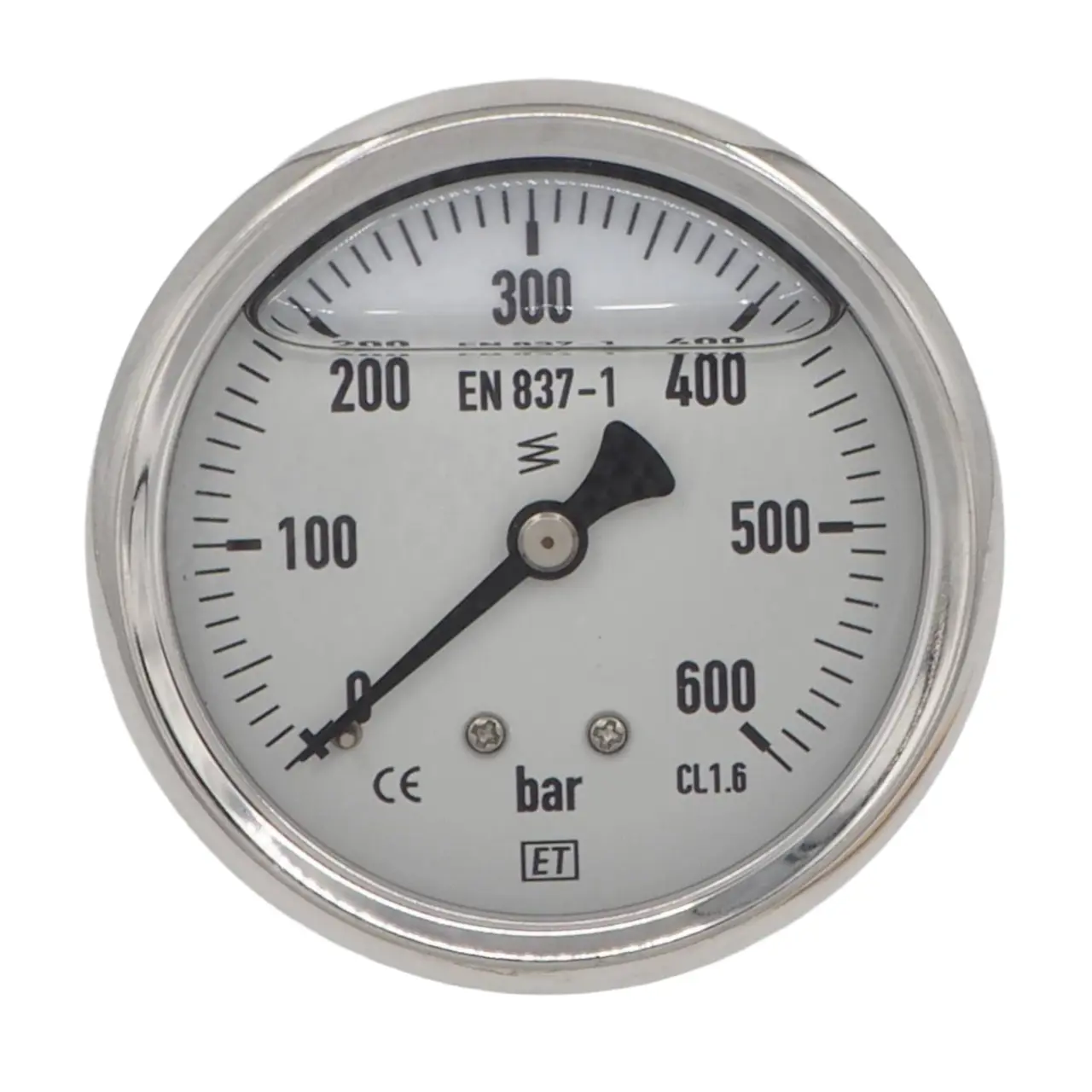 Manometer 600 bar hinter Edelstahl